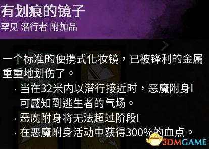 非常吊的紫色附件。用在第一种碎镜套路中的核心附件。32米透视让人类逃生者无所遁形,想玩第一个套路来恶心人的有多少点多少!!!
