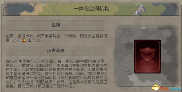 游戏末期对科技胜利非常有用的政策就是我们之前提到过的一体化空间机构,这一军事政策可以为太空竞赛项目增加15%的生产力,前提是该城市有军事学院和海港,这也是我们之前在首都建造军营和港口的目的之一。