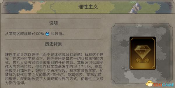在游戏过程中,我们在市政树上优先研究的政策是启蒙运动,启蒙运动可以解锁经济政策理性主义,可以提高学院区建筑提供的科技值100%,可以大幅提高科技的研究速度。