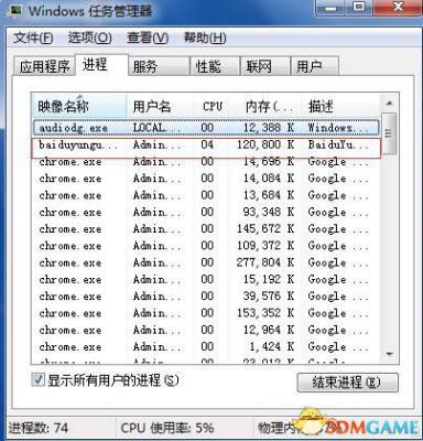 如果任务管理器里还存在这个进程,请直接右键选择关闭!(我自己测试发现:如果你用百度云管家客户端下载之后,没有关闭客户端或者在任务管理器中没有关闭这个进程的话。解压缩过程中提示压缩包损坏的几率几乎是80%以上!)
