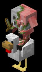 鸡骑士是幼年僵尸、幼年僵尸村民、幼年尸壳、幼年僵尸猪灵或幼年溺尸骑着鸡的罕见组合。