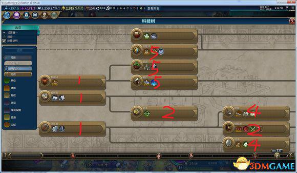 三个无尤里卡科技顺出,其他最后都要达到尤里卡,如果你没做到,你可以先研究到一半,然后转其他科技,但是最好按照此顺序来研发