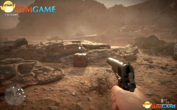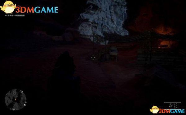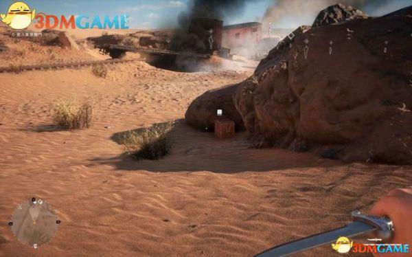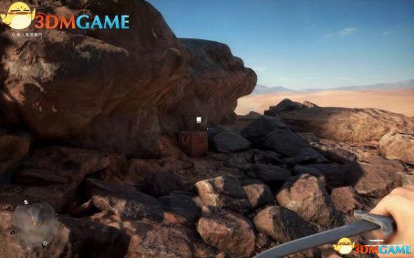 现在主角身上只有一把匕首。下了山坡,往左边如图的石丘跑过去。