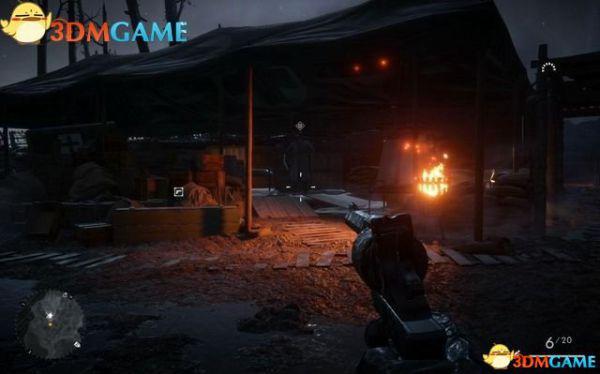 然后徒步下山,潜行到装甲车这边,暗杀一名守卫。