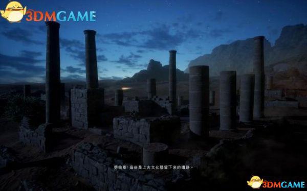 穿过峡谷往西北方向走,来到古代遗迹附近,登上前方小山的山顶。
