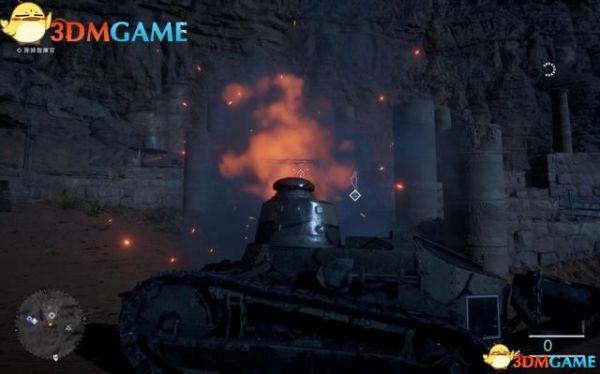 一名军官在一座古代的废墟遗迹中,这里还有装甲载具和野战炮,给这里染上了一些现代感。