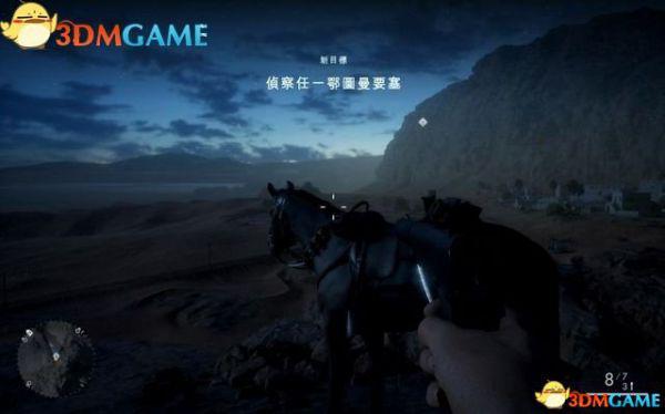 任务开始,扎拉位于山坡上,身边还有一匹战马。