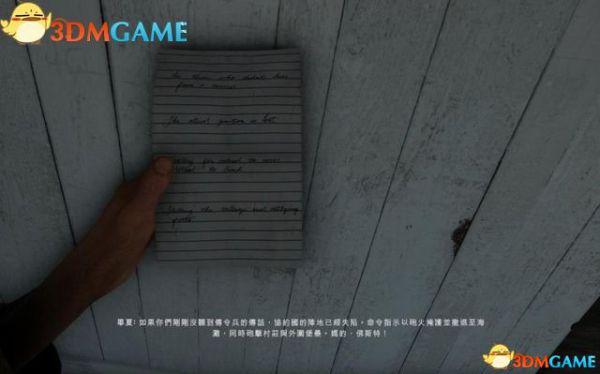 前往小镇的东北方,这里有两幢民居,在左边的民居废墟里,找到野战手册(3/5)。