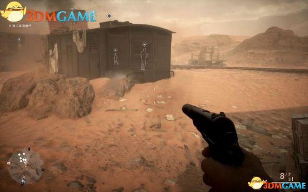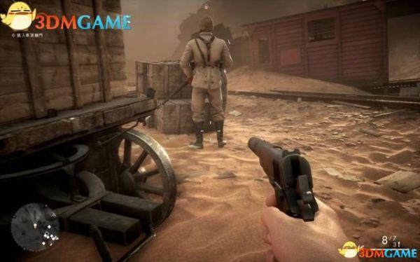 再跑回出轨的列车这边,在车厢旁边有两名徘徊的敌兵,用匕首解决掉。