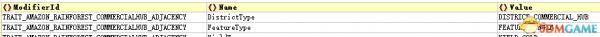 而这只是对可以直接修改的数值类条件,而还有些种类是属于文本描述的,要修改内容就必须到对应的文档里修改,比如说以下的districttype,就只能看到值,要具体了解的话,就需要到Districts.xml里面看了。