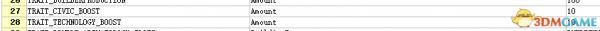 然后通过TraitType在TraitModifiers目录下面找到对应的ModifierId,第一个是对市政科技也就是鼓舞的加成,第二个是对尤里卡的加成