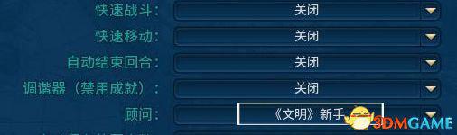 这设置的游戏这一栏里,如果你是第一次玩文明系列的游戏,那么最好是在顾问一项中选择《文明》新手,