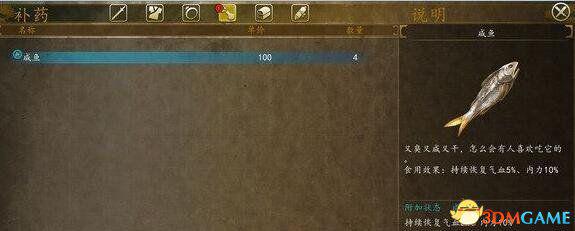 在逍遥谷老胡左边的房间的篮子里有4条咸鱼。