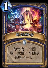 原始融合:这张卡在最新的标准中速萨里面是没有的。但是变种变阵的里面是一张or满编的。这里拿出来说主要是给大家多一个考虑,首先要明白一个思路就是原始融合和穴居人是不能同时带的,原始融合如果要进入卡组构筑。穴居人要全下,换银色侍从,另外就是法力之潮需要满编。这是两个必须更改的点,但这样上3下2是多一张的。在其他位置上狼魂需要下一张做一个微调。原始融合现在更多的是配合变种的图腾萨,一般来说场面上4费左右有3个图腾就可以下场配合55嘲讽一起给对面压力了。实战来看效果是一张很不错的卡,和穴居人比起来只是思路上不同,没有优劣之分。可以做一个参考,后面也会更新一些变种的卡组讲到原始融合(友情提示:234是图腾。我发现真的有很多人是不知道的)很多时候可以1费图腾魔像 下回合原始融合。这种打法基本是要卡对面费用。在面对猎人和内战的时候是用得到的,主要是一个权衡的问题,你要把对手拖入到你的布局中。