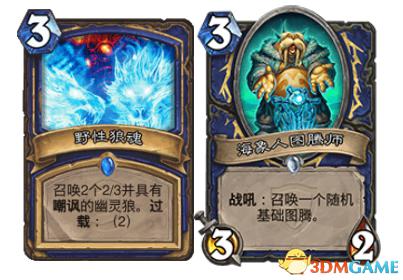 这里把这两张卡放在一起主要是版本之后。海象人被削弱,现在萨满的三费用什么随从来填补海象人削弱以后产生的弱势回合期。所以说狼魂这张卡又回到了我们的视野当中,狼魂一般是8月9月的时候脸萨作为配合前期天是压场的时候选择带的卡牌,非常克制诸如猎人 法师这些职业。弊端也非常的明显,基本放弃下个回合随从上场的机会,前面在蓝龙德的帖子里也有说到,如果德鲁伊这个职业一局游戏就是不同的抉择的话。萨满更多的是如何利用好自己每一回合的水晶给自己带来的最大的效益。在4-7费这个关键时期里面合理利用你的过载卡牌给你创造优势,又不会因为过载影响自己的节奏,我个人感觉这是每一个优秀的萨满需要具备的基本功。