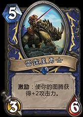 两张的好处是你什么时候都可以5费扔一个下去,你不会亏。他肯定会解,你不用怕某一个时刻你的场面会没有威胁。毕竟对于很多职业来说两张雷霆崖已经很烦了。但两张第一个问题就是一般来首雷霆崖+嗜血一共是两张的,这样的话一张就代表增加了嗜血,而嗜血是萨满对阵战士稳定的几张可以提升胜率的牌。所以来说雷霆崖跟嗜血发面是中速的一个变种同时也是一个取舍。个人偏向于单雷霆崖的带法。毕竟连德鲁伊都带嘉顿了,我们也应该给人家一点面子不是么。