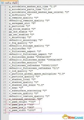 6. 修改后面的数值,w_game_width对应窗口化分辨率的宽,w_game_height对应窗口化分辨率的高,保存文档。