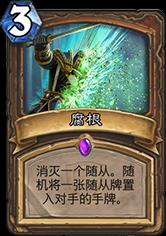 腐根:带且只带一张。 德鲁伊最后的硬解 这是我对这张卡的描述。自然平衡已经不符合现在版本高强度随从站场的特点了。腐根可以帮你解决大多数问题,你可能苦于对面连续两个大哥压场没有硬解苦恼,所以——把你的腐根留在最有用的时候。因为当你用了以后,你的对手会更加的肆无忌惮不是么?