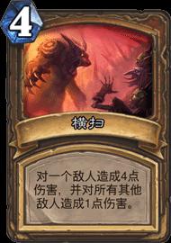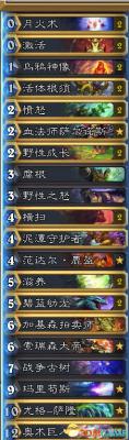 横扫:满编两张。说一个新手很大的误区,起手留横扫的问题。横扫这个东西一般来说起手是不留的,因为一个横扫是解决不了空场清场的问题的,任何一个人都会防德鲁伊的横扫。起手留横扫只会占你一个卡位。没有任何用处。更多是配合蓝龙和激活跳费后站住场面横扫+愤怒or树根月火进行返场。