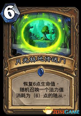 月光林地:带且只带一张。 蓝龙德专属,最起码我的导演德是不带的。 这张卡不管是从奶力还是从6费随从站场来说性价比都很高。而且任何一张法术在德鲁伊卡组构筑里都是好卡, 蓝龙德很大的问题是面对中快速(以后中速猎,龙战和萨满统称)前期压力过大导致的血量过低,所以前期解场卡,奶卡都是蓝龙德需要的。不带两张是因为6费会带大帝。而德鲁伊6费太多很影响节奏。而且卡位很吃紧,如果有考虑带两张的朋友可以暂时放弃了。经测试两张月光林地性价比很低。因为我们不是铺场职业,也不知道这里大家是否能理解。