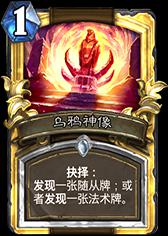 乌鸦神像:神卡满编两张不解释!,现在德鲁伊T1的来源就是乌鸦神像的原因。合理的法术选取往往是德鲁伊水平高低的直接表现。同样如何选择发现的法术or随从(德鲁伊默认必须法术)也会考验你对其他套牌的理解。一般来说德鲁伊起手不炸的情况是先手1费神像或者树根。所以起手必留。
