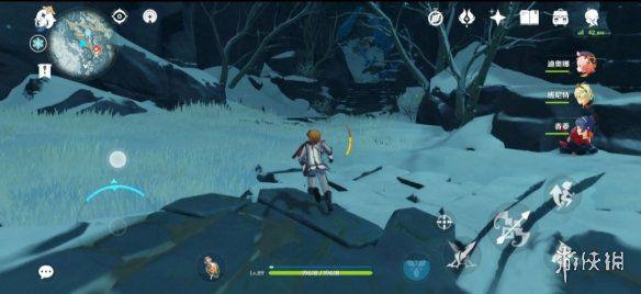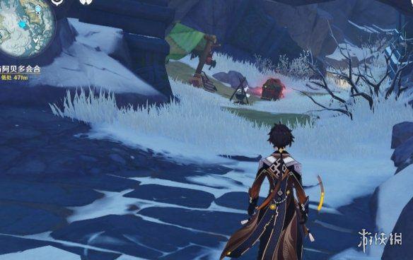 首先,我们传送到雪山七天神像往回走(画面转过180度),再往左前方走有一个洞口。