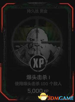 在任意难度下的持久战匹配游戏中,使用爆头击杀不少于100个敌人。