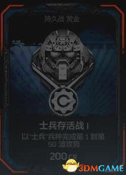 在任意难度的持久战匹配游戏中以“士兵”兵种完成全部攻势。