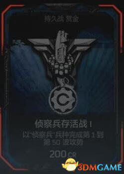 在任意难度的持久战匹配游戏中以“侦察兵”兵种完成全部50波攻势。