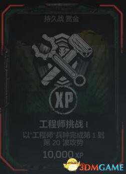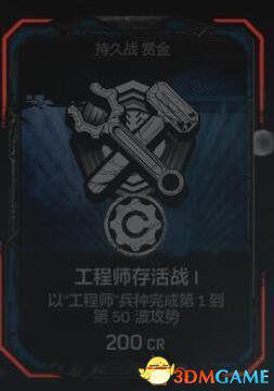 在任意难度的持久战匹配游戏中以“工程师”兵种完成全部50波攻势。