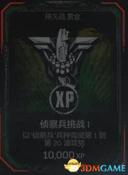 在任意难度的持久战匹配游戏中以“侦察兵”兵种完成前20波攻略