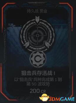 在任意难度的持久战匹配游戏中以“狙击兵”兵种完成全部50波攻势。