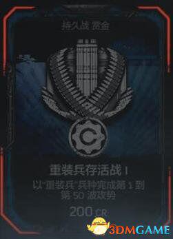 在任意难度的持久战匹配游戏中以“重装兵”兵种完成全部50波攻势。