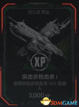 在任意难度的持久战匹配游戏中使用突击步枪(骑兵突击步枪、刺刀突击步枪、执法冲锋枪)击杀不少于100名敌人。