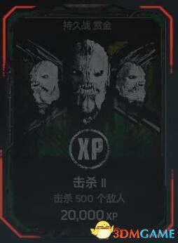 在任务难度下的持久战匹配游戏中,击杀不少于500个敌人。