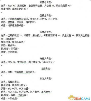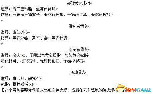 黑暗之魂3NPC作用、武器、装备、其他物品出售表: