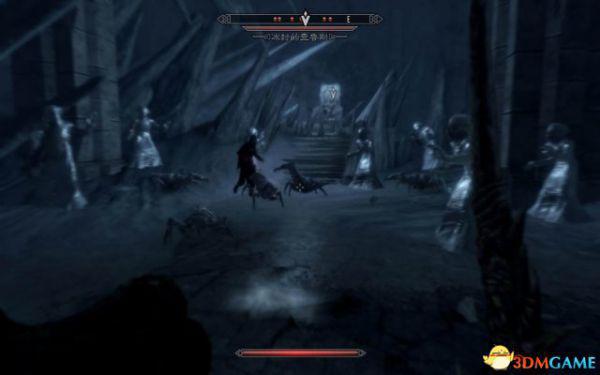 通过圣坛里的传送门来到一个叫遗忘峡谷的地方,这里有一个结冰的湖,在冻结的湖面上行走时,会有两条龙破冰而出袭击我们...自求多福吧!!这里还有一个石柱,接近可以学到新的龙吼。