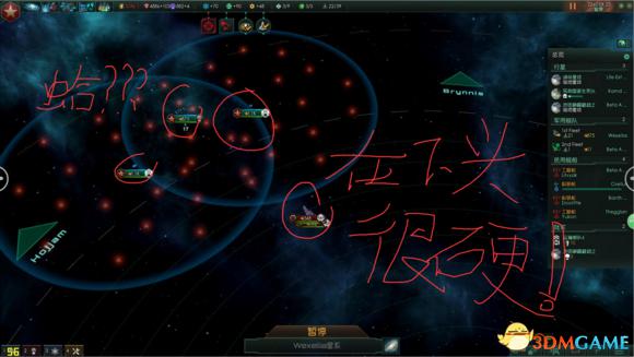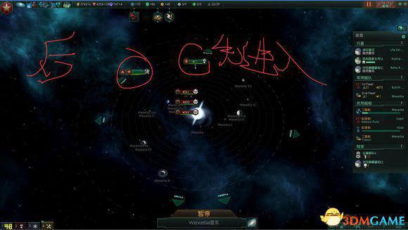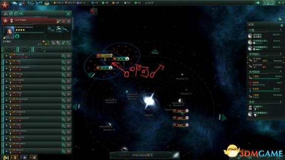 血甲怪有个习性,他会主动攻击进入星系的一切船只,因此为了保证我们的工程船能有时间建造两个防御平台,我们必须派遣一条船去引诱他们远离我们的工程船。