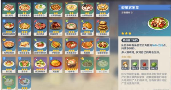 原神轻策农家菜食谱在哪
