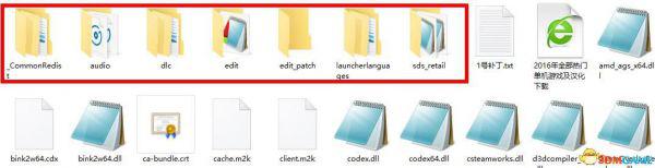 打开游戏根目录,除了红框里的,其余全部删除,然后解压缩,复制文件里的文件到游戏根目录。