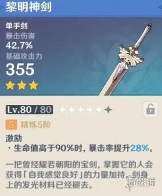 所以在阿贝多面板暴击率30%以前,推荐使用黎明神剑使得伤害更加稳定。