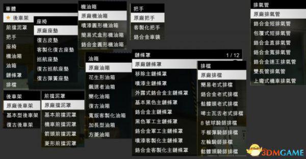 依旧是改装项暴多,不过有的改装项和别的摩托是共用的(比如那链条罩)。