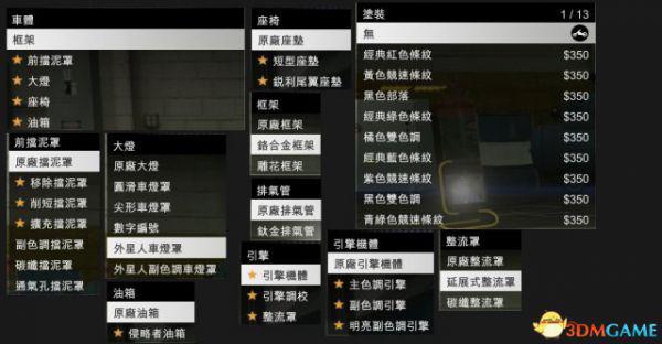 看到改装项有多少了吗,班尼摩托版可不是白叫的,涂装就有13个,粗略算算怎么也有上千上万种组合。