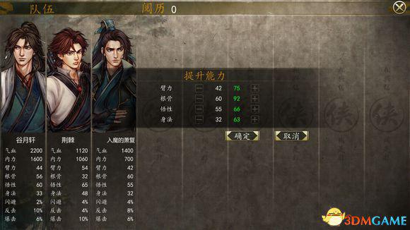 但是这种队友有劣势,第一是没有天赋,能力貌似可以提升,不知道能不能学招式和内功,因为很多内功和招式有限定人物,其他的还没测试。