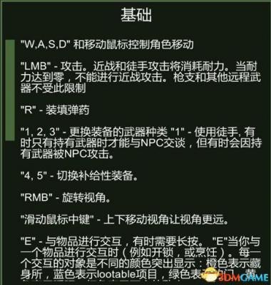 1:角色的生命和耐力,耐力用来跑步和挥动武器。
