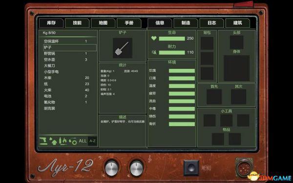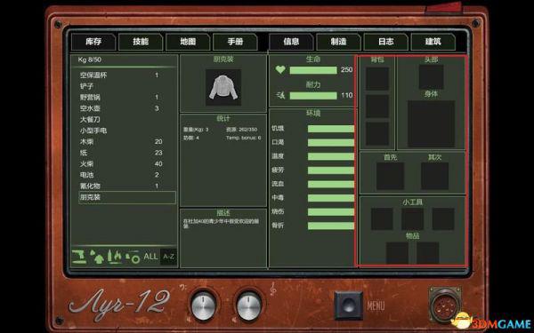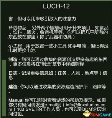 小工具提供开锁、照亮等功能,还有物品可以使用来回血、恢复体温等等。