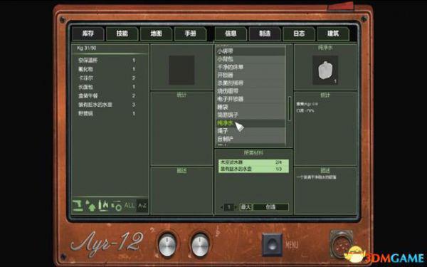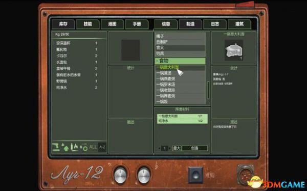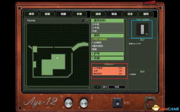 点击制造可以看到你能够制造的物品,红框内为所需原料,蓝框内为功能描述。