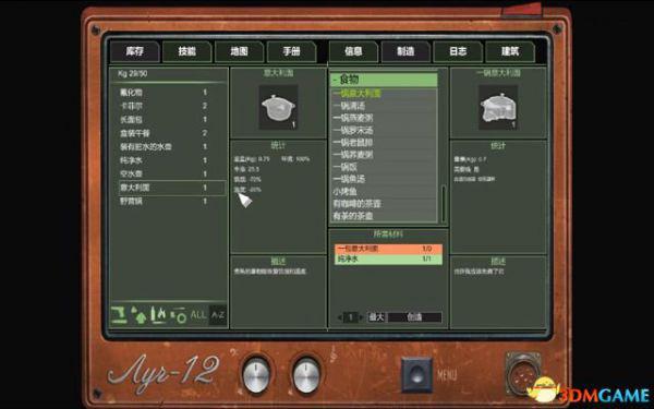 普通的收集原料直接制作用不着多说,但是原料和工具的使用笔者要说明一下。