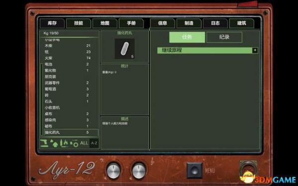 你需要食物、医疗用具来补充这些属性,维持生存。