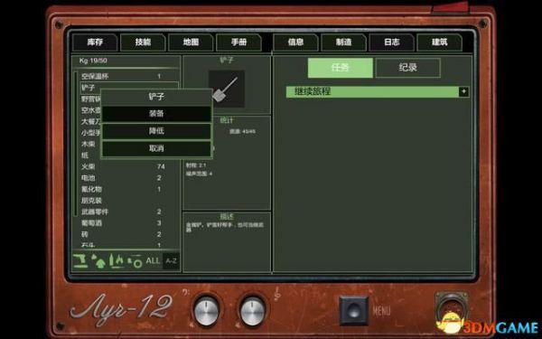 例如铲子,可以看到其用作武器时的精度、伤害和攻击距离。